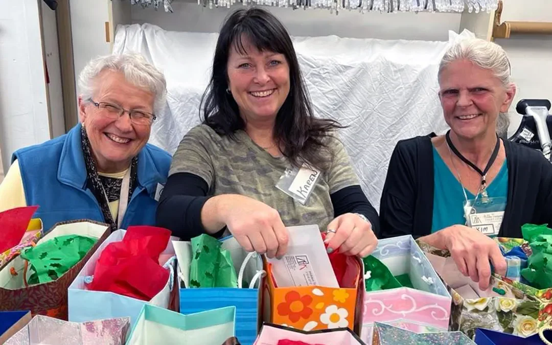 The holiday spirit was on display again at Hidden Treasures in Abbotsford this past Friday, when a group of staff and volunteers put the last touches on gift bags for women at the Warm Zone.